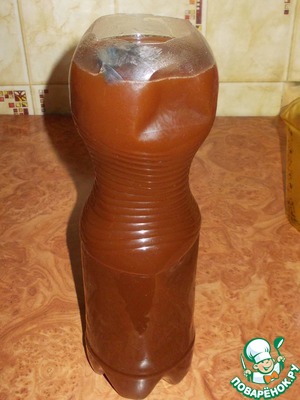 Накрываем пакетом и перетягиваем резинкой, чтоб пакет не спадал и не съезжал. Ставим в холодильник на 3-4 дня. Раз в день достаем бутылку с рыбой и аккуратно перемешиваем маринад.