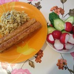 Теперь даем им остыть. Для длительного хранения помещаем в морозилку. Для не сильно длительного в холодильник. Пленку сразу не снимаем! Из пленки извлекаем только перед обжариванием на сковороде или на мангале. Замороженные колбаски перед обжариванием можно не размораживать. Просто снимаете пленку (срезаем уголок с хвостиком с одной стороны и выталкиваем колбаску сдавливая от закрытого конца двигаясь в сторону срезанного.) Сняв пленку обжариваем колбаску на разогретой сковороде с растительным маслом под крышкой со всех сторон. Для приготовления на мангале колбаски смазываем не большим количеством растительного масла, чтоб появилась красивая румяная корочка! Но эти колбаски можно кушать и не подвергая вторичной термообработке! Не обжаренные они по вкусу, как паровые котлеты. Подготовленные заранее эти колбаски очень выручают в случае неожиданных гостей или когда надо быстро приготовить завтрак, обед или ужин! Для пикника отличный вариант! Да, и как, говорится - "на все случаи жизни"! Приятного аппетита!