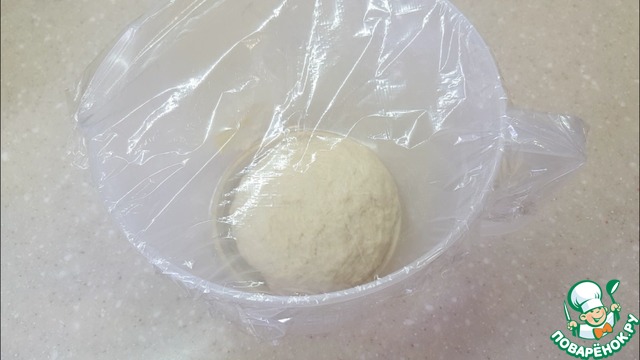 Тесто накрываем пленкой и ставим в теплое место подходить.