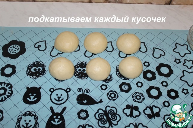 Делим тесто на 6 равных частей. Подкатываем каждый кусочек. Даем отдохнуть 10 минут.