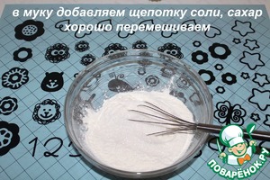 Просеиваем муку. В мы добавляем щепотку соли, сахар. Хорошо перемешиваем.
