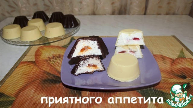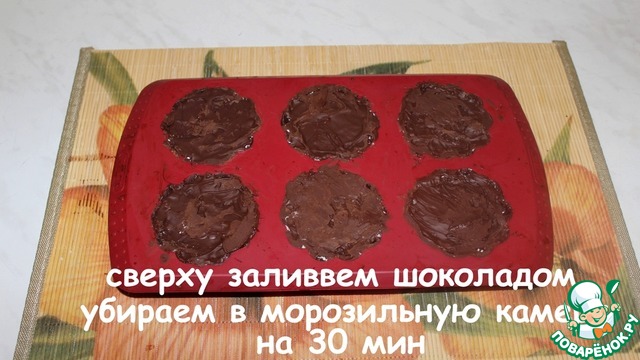 Сверху заливаем шоколадом. Убираем в морозильную камеру на 30 минут.
