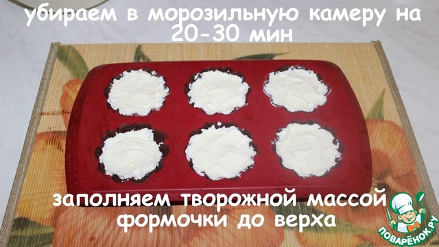 Заполняем творожной массой формочки до верху. И убираем в морозильную камеру на 20 - 30 минут.