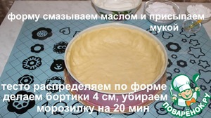 Форму смазываем маслом и присыпаем мукой. Тесто распределяем по форме и делаем бортики высотой 4 см. Убираем в морозилку на 20 минут.