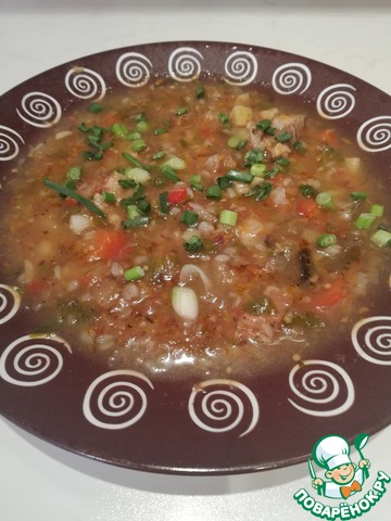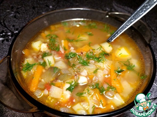 Предлагаю попробовать гречневый суп с добавлением баклажана. Сытно, быстро и вкусно!