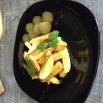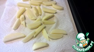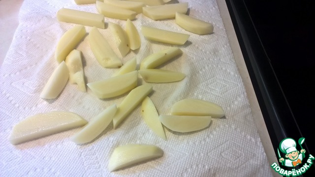 Выкладываем ломтики картошки на бумажное полотенце и обсушиваем, промакивая их сверху другим куском бумажного полотенца. Это нужно для того, чтобы не остудить масло, когда мы бросим картошку на сковородку и для того, чтобы масло не стреляло, потому что, попадая в раскаленное масло, капельки воды мгновенно вскипают и "выпрыгивают" из сковородки, захватывая с собой частицы раскаленного масла. Когда они попадают на кожу - это очень неприятно