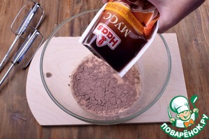 Приготовим шоколадно-апельсиновый мусс: для этого нальем в глубокую миску охлажденное молоко и насыплем смесь для приготовления мусса ТМ HAAS