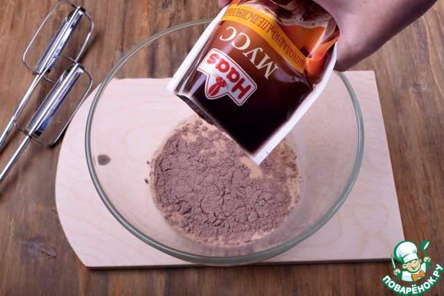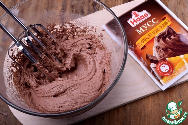 Шоколадно-апельсиновый мусс переложим в кондитерский мешок. -
