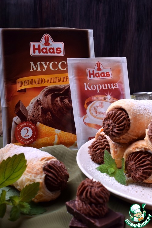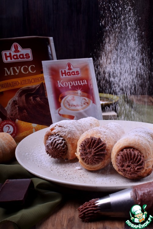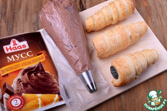 Рецепт «Трубочки с шоколадно-апельсиновым муссом»: