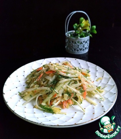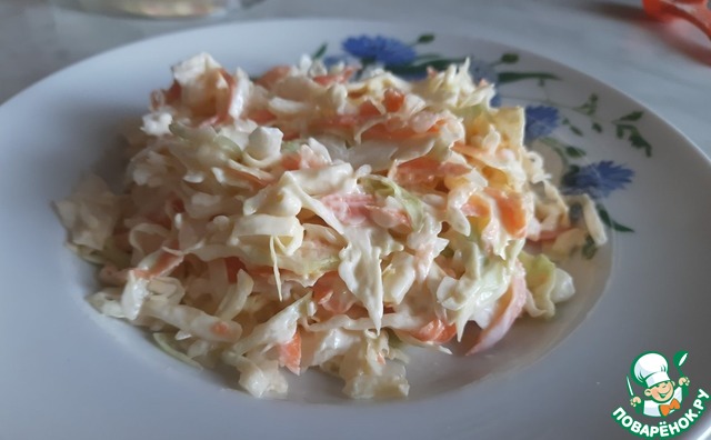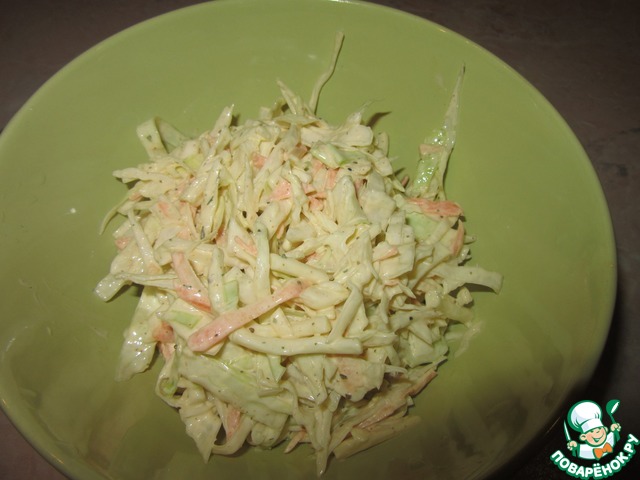 Простой, вкусный, лёгкий, свежий и весьма достойный вариант капустного салата. Все очень гармонично, несмотря на кажущуюся несовместимость вкусов. Удивило отсутствие подобного салата на сайте.