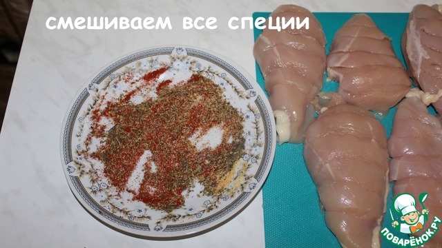 Посыпаем специями грудки.