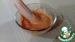 Как порезали все сосиски, берем миску для смешивания. Добавляем в неё томатную пасту (кстати можно и кетчуп, но с томатной пастой вкуснее получается).