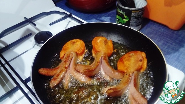 Укладываем на сковороду наших осьминожек и жарим до готовности (минут 5-7).