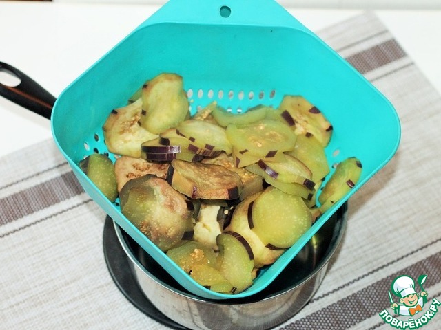 • 4. Выложить баклажаны в подсоленную воду и довести до кипения, 2-3 минуты.