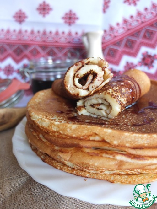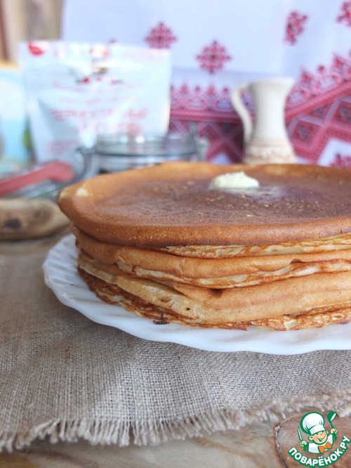 Из молока и закваски получается йогурт. Из 500 мл этого йогурта мы готовим блины