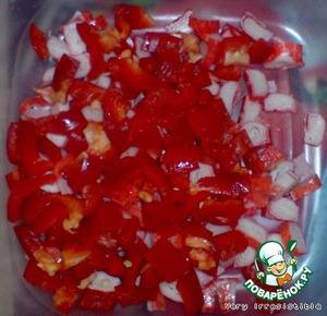 Перец нарезаем кубиками.