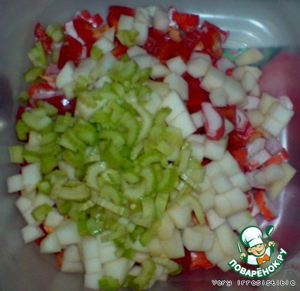 Добавляем нарезанную кубиками грушу и сельдерей.