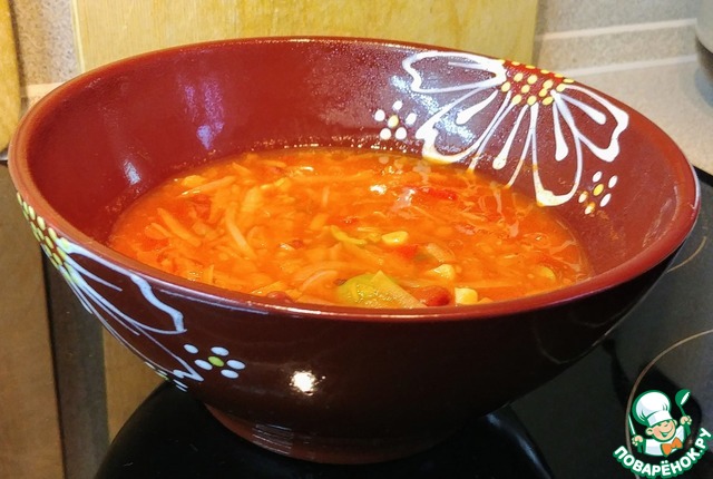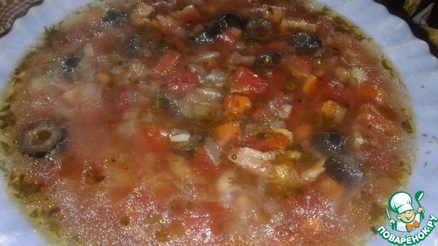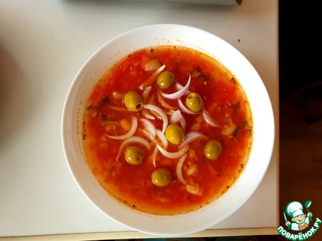 Суп хоть и постный, но очень сытный, с насыщенным томатным вкусом.