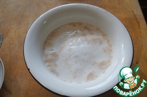 Растворить в теплом молоке сухие дрожжи и сахар. Убрать в теплое место до появления пенной шапочки. -