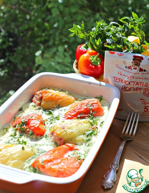 Рецептов фаршированных перцев множество. Хочу предложить вам очень удачный вариант - перцы сначала запекаются, а потом доводятся до готовности в нежнейшей заливке из домашнего йогурта, приготовленного из закваски "натуральный термостатный йогурт"от орсика. Блюдо, благодаря нежному вкусу йогурта, приобретает сливочное послевкусие! Пробуем?