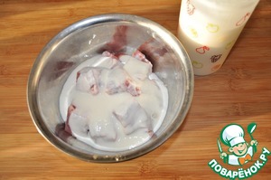 Из приготовленного йогурта я решила приготовить свинину в грузинском маринаде. Берём жирненькое мясо, у меня грудинка с косточками. Режем крупными кусками и заливаем йогуртом.