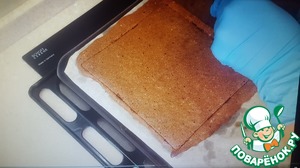Еще теплые коржи вырезаем и оставляем остывать. Затем снимаем с пергамента