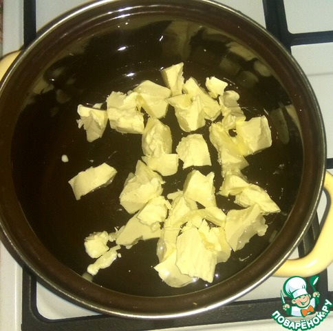 В небольшую кастрюлю нальем воду, добавим соль и сахар, нарезанное на кусочки масло. Поставить кастрюлю на огонь, довести до кипения, растопить масло. Снять с огня.