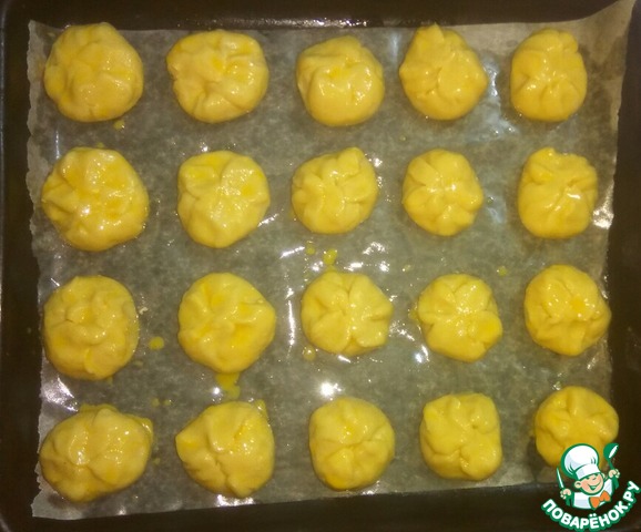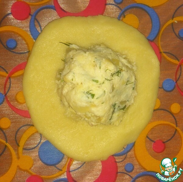 Каждый шарик раскатываем, в центр выкладываем начинку. Формируем пирожки.
