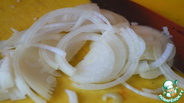 • Лук нарезаем тонкими полукольцами.