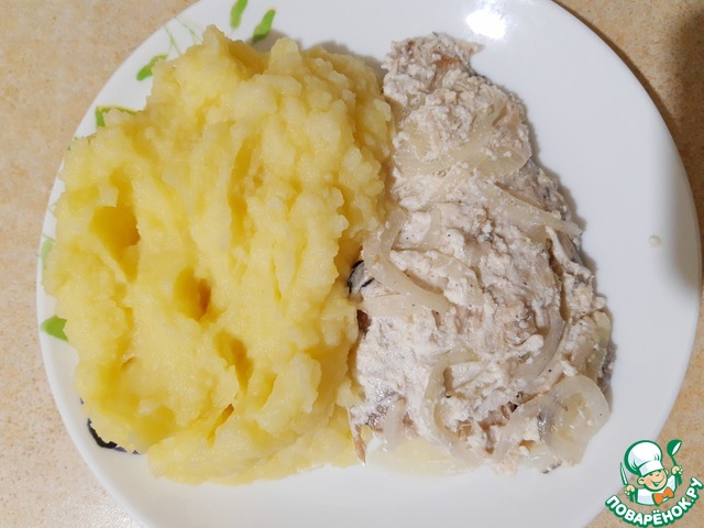 Какая же вкусная рыбка получилась! У меня тушки хеке. Всё по рецепту сделала. Лук хрустящий и такой вкусный. Очень мне понравилось йогуртом рыбку намазать. Да, да именно намазать, т.к. йогурт был у меня ооочень густой. Отличное сочетание ингредиентов. Спасибо большое, Олечка, за рецепт! Светлая тебе память!