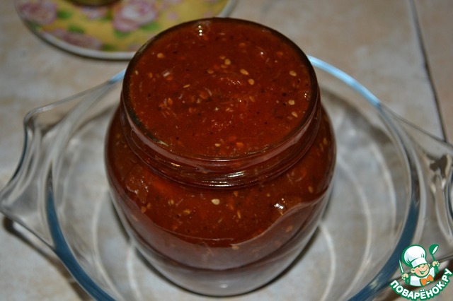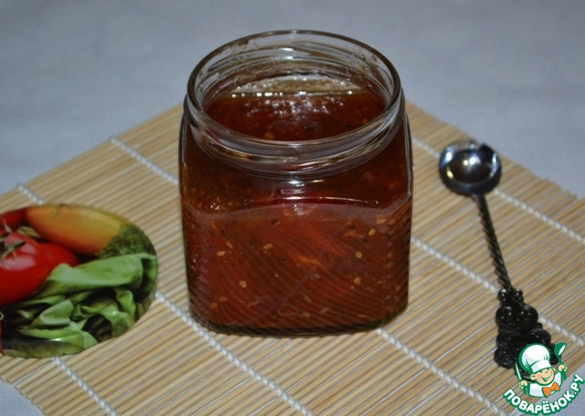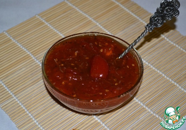 Рецепт этого необычного конфитюра достался мне от знакомой. Сама она ни разу его не готовила, всё никак не решалась. И вот, с некоторыми изменениями, я воплотила в жизнь это рубиновое чудо. Скажу честно - это бомба! Сладко-пряный, в меру острый, с ароматным букетом специй и чесночка... такого я ещё не пробовала! Томатный соус-конфитюр подойдёт к шашлычку и картошечке, а ещё очень вкусно на хлебушек с ломтиком сыра - объедение! Из серии "Заготовки на зиму".