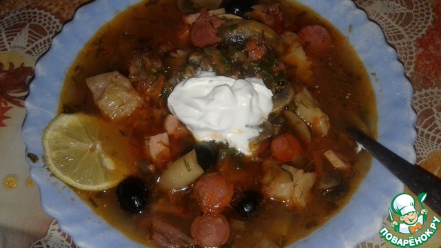Солянка - это всегда вкусно. Когда-то в молодости мне казалось, что это невероятно сложный суп, и я никогда не смогу его приготовить, а теперь я собираю различные варианты солянок. Их много. Вот еще один, на мой взгляд, интересный рецепт.