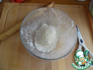 Тесто получается отличное, эластичное и как перестанет приставать к рукам, оно готово. Скатываем его в шар. Накрываем плёнкой пищевой и даём ему отдохнуть минут 20-30.