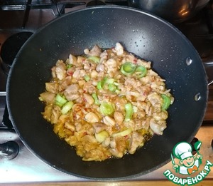 Добавляем курицу и готовим периодически помешивая минут 10-15.