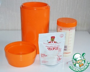 Для приготовления рулетиков нам нужен творог. Его приготовим из молока с добавлением бактериальной закваски ТМ Oursson. Для этого вскипятим 1 л молока и остудим его до комнатной температуры. Затем добавим бактериальную закваску, тщательно перемешаем и поместим в специальный термос на 6-10 часов. По истечение времени достанем емкость из термоса и увидим плотную массу. Ножом разрежем массу на кубики примерно 1,5*1,5 см. Нагреваем данную массу на водяной бане в течение 10-15 минут. Затем массу откинем на сложенную вдвое марлю и дадим стечь сыворотке. Массу можно положить под гнет или подвесить.