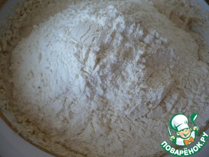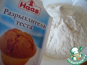 Теперь в муку добавляем разрыхлитель теста ТМ HAAS, хорошо перемешать.