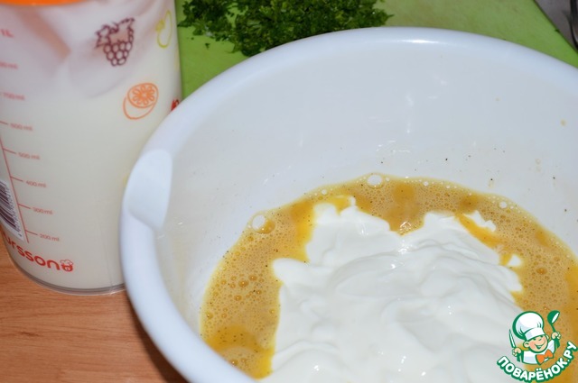 Яйца взбить с солью и перцем.