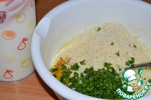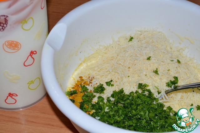 Добавить натертый на мелкой терке пармезан, измельченную петрушку и порошок карри.