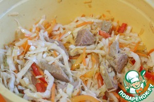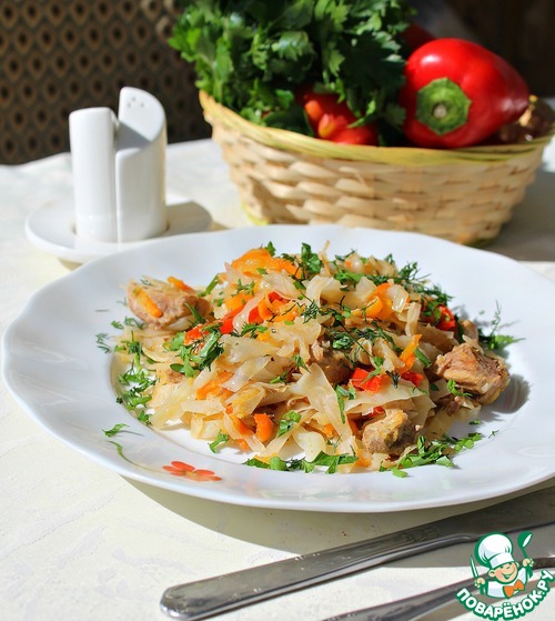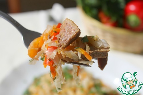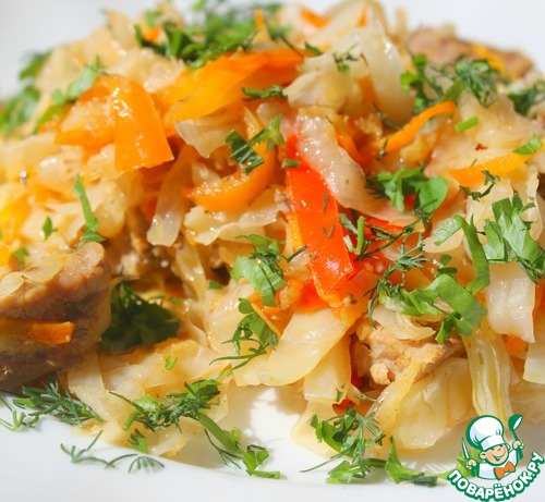 Хотела сделать для себя капусту с овощами, но муж попросил добавить мясного, поэтому получилась капуста с овощами и мясом.