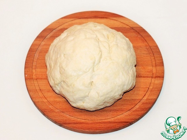 Затем накрываем тесто пищевой плёнкой и оставляем на полчаса. За это время клейковина в тесте набухнет, тесто дойдёт до нужного состояния. Небольшая липкость присутствует, но не забивайте тесто лишней мукой. -