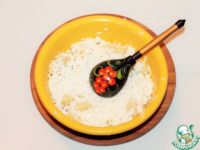 7. Приготовим начинку. Отвариваем картофель в "мундире", очищаем от кожуры и измельчаем. Можно натереть на мелкой терке или измельчить блендером. Воду не добавлять!