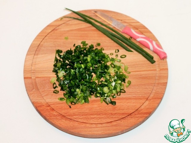 10. Нарезаем мелко зеленый лук. Расход на 1 лепешку 1-2 ч. л. измельченного лука.