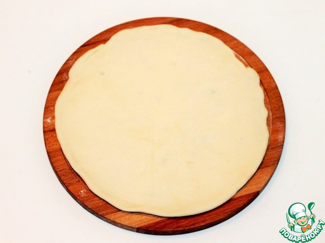 Раскатываем лепешку до толщины ~ 5 мм, Ф=23-25 см. Чем тоньше лепёшка, тем вкуснее.