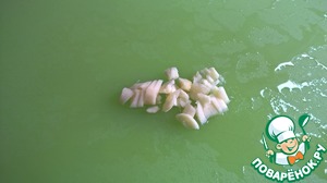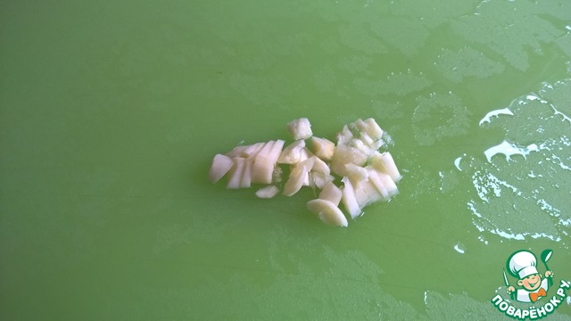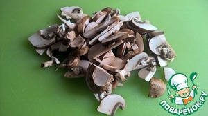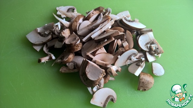 Грибы нарезаем тонкими ломтиками (2 - 3 мм), чтобы они быстро просолились. Сначала разрезаем пополам, а потом, каждую половинку на ломтики.