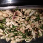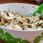 Приготовить такие шампиньоны занимает минут 15. Удобен этот рецепт, когда нужно быстро собрать на стол и нужна какая-нибудь закуска. Можно сначала сделать такие грибочки, а потом заняться остальными блюдами - пока остальные блюда подаются, грибочки "дойдут". Никакой опасности тут нет, ведь шампиньоны часто едят сырыми, а в этом рецепте они просаливаются и из хрустящих превращаются в приятно-хрустяще-мяг коватые, в сочетании с лучком, чесночком и укропчиком, образуя отличную закуску. В этом рецепте я использовал бейби портабелло - разновидность шампиньонов коричневого цвета, но можно использовать и простые белые шампиньоны