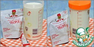 Емкость для приготовления творога простерилизовать. Влить в нее пастеризованное молоко комнатной температуры. (я взяла молоко 2,7% жирности) В молоко всыпать закваску для творога, тщательно перемешать чистой сухой ложкой до полного растворения закваски. Емкость закрыть крышкой. Поставить в термос-йогуртницу на 6-10 часов для сквашивания продукта.