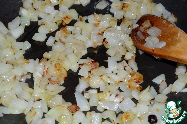 На растительном масле спассеровать нарезанный кубиком лук. -
