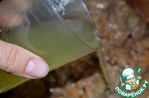 Влить горячий бульон, еще раз аккуратно перемешать и готовить ок. 7 мин.