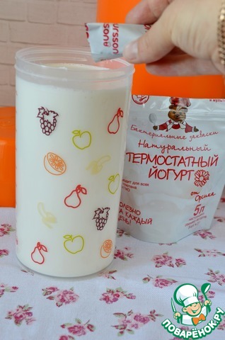 Для приготовления домашнего термостаного йогурта нужно взять молоко комнатной температуры и специальную закваску от Орсика.