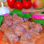 Нежная, ароматная куриная печень. Благодаря яблокам и домашнему йогурту вкус блюда приобретает легкий пикантный оттенок.